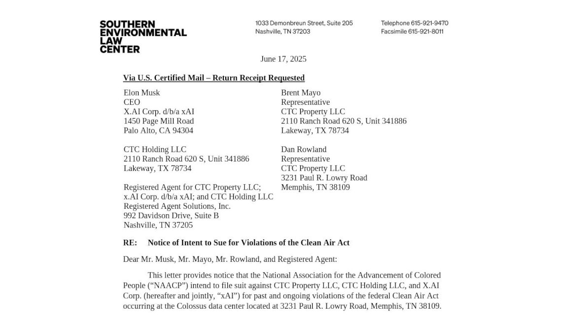 xAI’s decision to install and operate dozens of polluting gas turbines without any permits or public oversight is a clear violation of the Clean Air Act